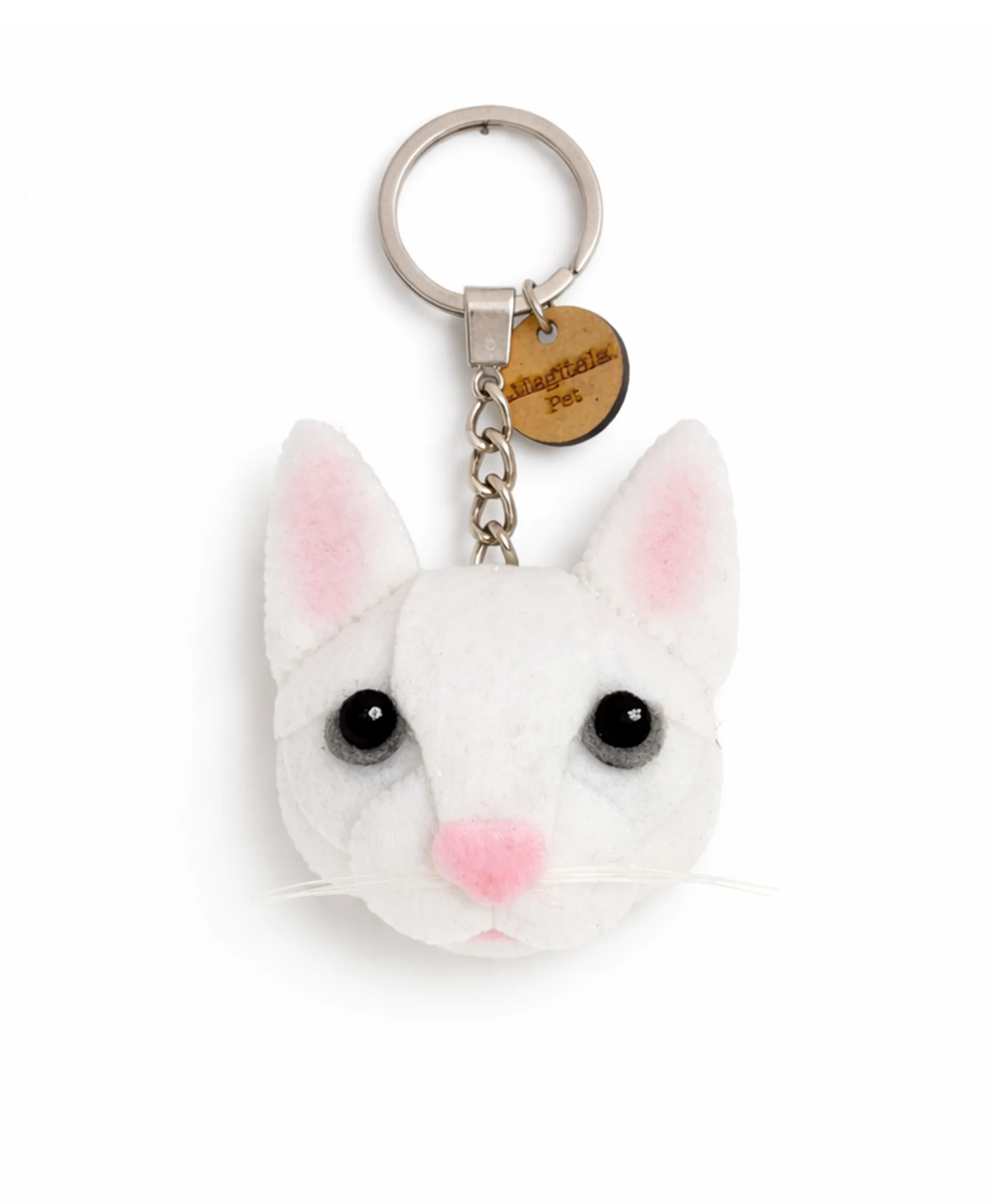 Llavero estándar de peluche de gato Blanco Común. Está hecho de fieltro y relleno con suave algodón. Es muy suave y tierno. Este llavero mide aproximadamente unos 6 cm de alto y 5 cm de ancho. Se puede colgar en tus llaves, bolso, mochila o en cualquier otro lugar. Esto será un gran regalo para tus amigos y familiares.